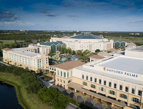 Located near the iconic Walt Disney World and Universal Orlando Resort theme parks, the Gaylord Palms Resort & Convention Center offers the ultimate resort vacation experience. Nine diverse on-site restaurants cater to any palate, and the full-service spa offers health and wellness services that promote balance and peace of mind. Plus, with a three-acre on-site water park, seven thrilling water slides, a relaxing rapid river, and a South Beach-inspired pool oasis, you’ll find endless opportunities to relax and soak up the fun — without ever leaving the property.